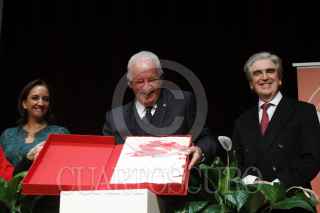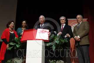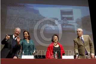 MÉXICO, D.F., 03DICIEMBRE2014.- Claudia Ruíz-Massieu, secretaria de Turismo, Marcos Fastlicht, director del proyecto del libro Museo Nacional de Antropología. 50 Aniversario (1825-1964) y Rafael Tovar y de Teresa, presidente de Conaculta, presentan un ejemplar del trabajo editorial con el que se conmemora al gran recinto que alberga el patrimonio prehispánico de nuestro país, en el auditorio Jaime Torres Bodet del MNA. FOTO: MOISÉS PABLO /CUARTOSCURO.COM