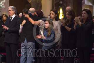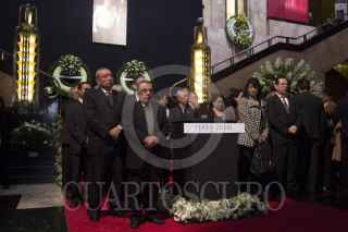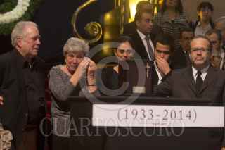 MÉXICO, D.F., 03DICIEMBRE2014.- Familiares, compañeros y amigos del escritor y periodista, Vicente Leñero, le rindieron un homenaje en el Palacio de Bellas Artes. FOTO: ENRIQUE ORDÓÑEZ /CUARTOSCURO.COM