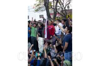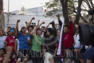 MÉXICO, D.F., 04DICIEMBRE2014.- Unos 500 estudiantes partieron al mediodía de la Plaza Roja de Zacatenco hacia el Reclusorio Norte, donde se encontraban consignados Ariel Flores Pérez, Óscar Espinoza Trigueros y Demián Reyes. Sin embargo, unos cuarenta minutos antes de su arribo al Reclusorio, los indiciados fueron puestos en libertad y trasladados a la casa de la familia de Demián Reyes. A su vez, Miguel Méndez, abogado de la Liga 1 de Diciembre, dijo a los presentes que los muchachos fueron liberados por la presión ejercida por la movilización y los conminó a no dejar de presionar. Unas horas después, regresaron a agradecer a los familiares y estudiantes que protestaron. FOTO: SAÚL LÓPEZ /CUARTOSCURO.COM
