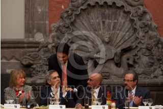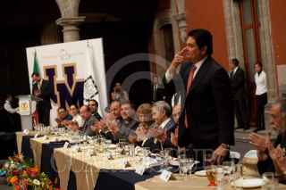 MÉXICO, D.F., 04DICIEMBRE2014.- La "Hermandad Puma" entrego chamarras universitarias al Gobernador de Sinaloa, Marío López Valdez, al titular de SAGARPA, Enrique Martínez y Martínez, así como a la ministra Olga Sánchez Cordero y el Jefe de Gobierno Miguel Ángel Mancera, entre otros personajes. La ceremonia se realizó en el el Museo de la Ciudad de México. FOTO: CUARTOSCURO.COM"