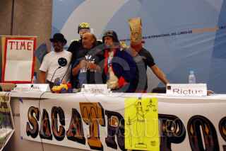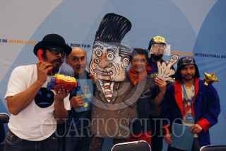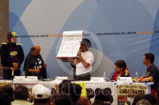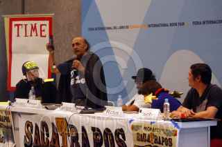 GUADALAJARA, JALISCO, 05DICIEMBRE2014.- Hoy en el marco de la edición 28 de la Feria Internacional del Libro de Guadalajara 2014 (FIL) que se lleva a cabo en la Expo y durante el Encuentro Internacional de Caricatura e Historieta, se llevo a cabo la Tertulia Monera “Lo que leen los moneros” con la participación de Bulmaro Castellanos, Magú, Juan Alarcón, Rictus, Tacho y Sirako. FOTO: FERNANDO CARRANZA GARCIA / CUARTOSCURO.COM