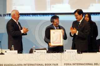 GUADALAJARA, JALISCO, 05DICIEMBRE2014.- Hoy en el marco de la edición 28 de la Feria Internacional del Libro de Guadalajara 2014 (FIL) que tiene lugar en la Expo, se llevo a cabo el Homenaje ArpaFil y se reconoció al Arquitecto Mauricio Rocha. FOTO: FERNANDO CARRANZA GARCIA / CUARTOSCURO.COM