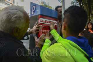 MÉXICO, D.F., 06DICIEMBRE2014.- Vecinos de la colonia Napoles se reunieron hoy para realizar una protesta en contra de los parquimetros que el Gobierno de la Ciudad de México coloco en la delegación Benito Juárez, la protesta consto de una clausura simbólica de algunos de los parquimetros en dicha colonia. Los parquimetros entraran en función a partir del próximo lunes 8 de diciembre. FOTO: ISABEL MATEOS /CUARTOSCURO.COM