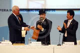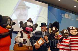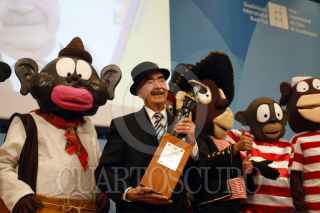 GUADALAJARA, JALISCO, 06DICIEMBRE2014.- Hoy en la Expo y en el marco de la edición 28 de la Feria Internacional del Libro de Guadalajara 2014 (FIL), se llevo a cabo el Homenaje de Caricatura la Catrina y se Reconocio al Historietista Mexicano creador de Memín Pinguín, Sixto Valencia Burgos FOTO: FERNANDO CARRANZA GARCIA / CUARTOSCURO.COM