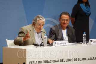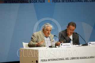 GUADALAJARA, JALISCO, 07DICIEMBRE2014.- Hoy en la Expo y en el marco de la edición 28 de la Feria Internacional del Libro de Guadalajara 2014 (FIL), se llevo a cabo un Dialogo entre el Presidente de la Republica Oriental de Uruguay, José Mujica y el Periodista, Ricardo Rocha. FOTO: FERNANDO CARRANZA GARCIA / CUARTOSCURO.COM