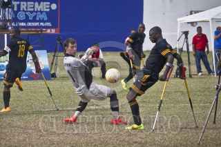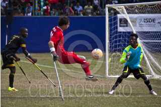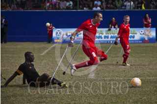 CULIACÁN,SINALOA 07DICIEMBER2014.- El equipo de Rusia se corono campeón del mundial de fútbol de personas amputadas, al vencer a su similar Angola tres goles a uno, el partido se disputo en el campo universitario de la (UAS) donde cientos de personas disfrutaron el emocionante encuentro, al finalizar se realizo la entrega de trofeos a los primeros lugares así como la ceremonia de clausura. FOTO: RASHIDE FRIAS /CUARTOSCURO.COM