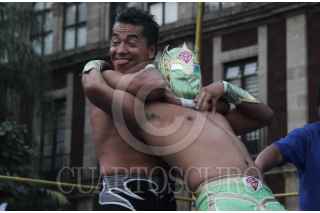 CUERNAVACA, MORELOS, 07DICIEMBRE2014.- Aficionados de la lucha libre se dieron cita en la explanada de la Plaza de Armas Emiliano Zapata, donde se llevó a cabo un espectáculo deportivo en el que participaron luchadores profesionales como el Negro Casas y Kalakita entre otros. FOTO: PATRICIA MORALES /CUARTOSCURO.COM