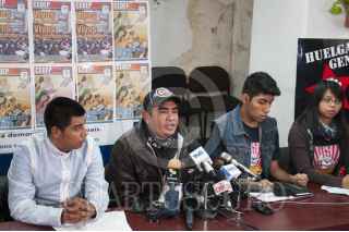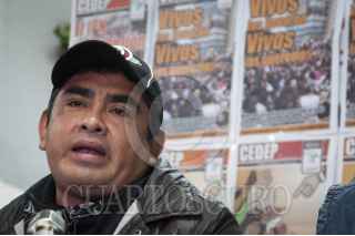 MÉXICO, D.F., 08DICIEMBRE2014.- José Félix Rosas, representante del Movimiento Popular del Municipio de Tecoanapa, de la Costa Chica de Guerrero, ofreció una conferencia de prensa en compañía de los estudiantes universitarios María Luisa Salazar, Darío Alcivar y Emiliano Castro, para dar su postura ante las declaraciones que realizó la PGR sobre la confirmación de que parte de los restos encontrados en un basurero de Colula son del normalista Alexander Mora, según peritos argentinos. Félix Rosas anunció las acciones que realizarán en el estado de Guerrero para exigir justicia y la desaparición de los poderes de gobierno debido a la relación de las policías y cabeceras municipales con el crimen organizado. FOTO: DIEGO SIMÓN SÁNCHEZ /CUARTOSCURO.COM