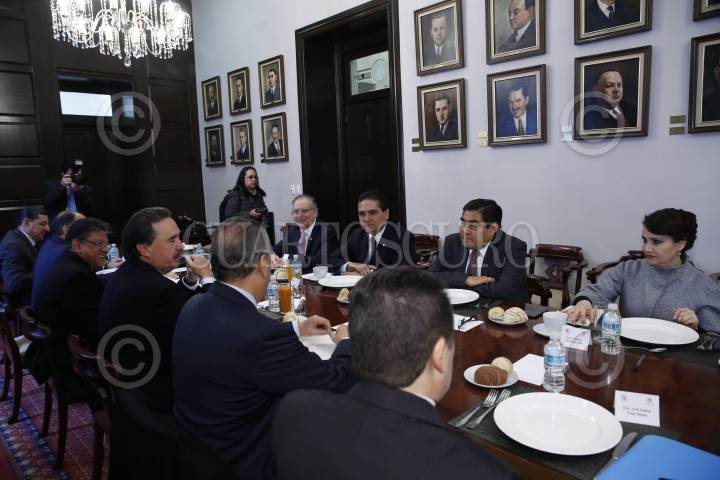 MÉXICO, D.F., 06DICIEMBRE2014.- Manlio Fabio Beltrones, Coordinador del PRI en la Camara de Diputados junto a Miguel Barbosa, Coordinador del PRD en el Senado de la República y Isabel Trejo, Coordinador del PAN en la Cámara de Diputados durante la conferencia que realizaron al termino de la reunión privada que mantuvieron para detallar la agenda legislativa en los siguientes dias. FOTO: CUARTOSCURO.COM
