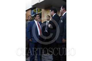 GUADALAJARA, JALISCO, 08DICIEMBRE2014.- El Gobernador, Jorge Aristóteles Sandoval Díaz, el Secretario General de Gobierno, Roberto López Lara y el Presidente Municipal, Ramiro Hernández García, acudieron a la sede internacional de la Luz del Mundo para dar sus condolencias al Pastor Evangelista Benjamín Joaquín, por el fallecimiento de su padre, Samuel Joaquín Flores, líder espiritual de la Luz del Mundo desde 1964, falleció esta madrugada a los 77 años de edad. FOTO: FERNANDO CARRANZA GARCIA / CUARTOSCURO.COM
