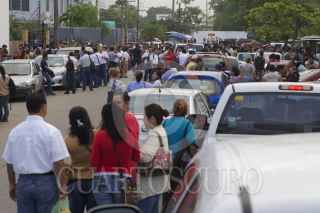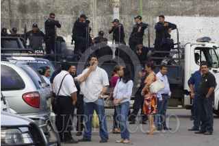 VILLAHERMOSA, TABASCO, 09DICIEMBRE2014.- Un grupo de habitares de la colonia Gaviotas Sur bloquean la calle El Camionero en la colonia Primero de Mayo en demanda del pago del FONDEN. Al menos son doscientos manifestantes que hicieron una vaya humana afuera de las oficinas de SEDESOL, sin embargo también afectan a empleados de la SCT y de la Junta Estatal de Caminos, donde no dejan pasar personas a pie o en vehículos; ante los hechos el cuerpo de granaderos de la SSP observa sin realizar acción alguna. FOTO: MARCO POLO GUZMÁN HERNÁNDEZ/CUARTOSCURO.COM