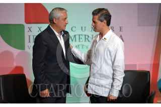 VERACRUZ, VERACRUZ, 09DICIEMBRE2014.- El presidente de Guatemala, Otto Pérez, sostuvo un encuentro bilateral con Enrique Peña Nieto, en el marco de la XXIV Cumbre Iberoamericana, celebrada en el puerto de Veracruz. FOTO: PRESIDENCIA /CUARTOSCURO.COM