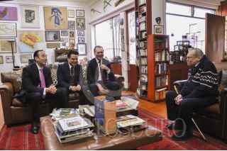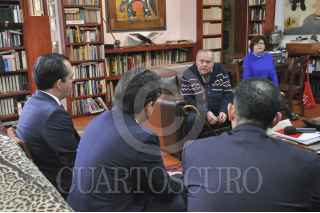 MÉXICO, D.F., 09DICIEMBRE2014.- Senadores integrantes de la Comisión de la Medalla Belisario Domínguez, Zoé Robledo, Roberto Gil Zuarth y Roberto Armando Albores; acudieron al domicilio del escritor chiapaneco, Eraclio Zepeda, para notificarle que será reconocido con este galardón en Sesión Solemne del Senado. FOTO: CUARTOSCURO.COM