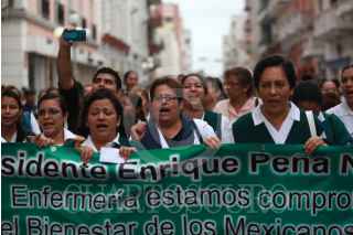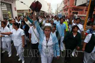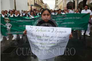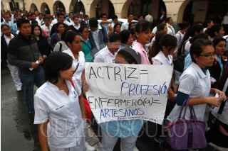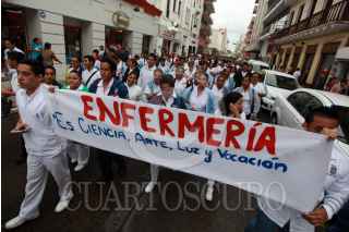 VERACRUZ, VERACRUZ, 09DICIEMBRE2014.- Estudiantes y enfermeros profesionales marcharon por las calles del puerto de Veracruz para exigir al gobierno que desista en la conversión de carrera técnica la licenciatura de enfermería. FOTO: FÉLIX MÁRQUEZ /CUARTOSCURO.COM