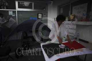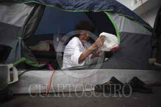 MORELIA, MICHOACÁN, 09DICIEMBRE2014.- La médico forense Graciela Delgado, quién amagó el pasado domingo con suturarse la boca si el día de hoy no era resuelto su caso, desistió y concluyó huelga de hambre que mantuvo durante 19 días a las afueras de la Comisión Estatal de los Derechos Humanos (CEDH). La ex trabajadora de la Procuraduría Estatal de Justicia del Estado (PGJE), se encuentra cerca de darle fin a un litigio de casi 4 años, tras llegar a un arreglo monetario. FOTO: ALAN ORTEGA /CUARTOSCURO.COM