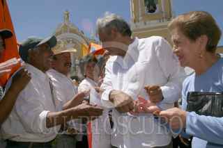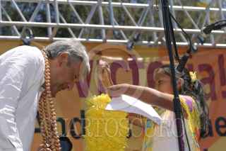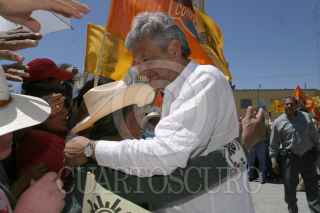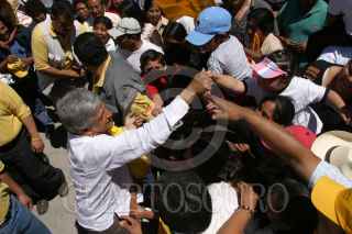 TEPEACA, PUEBLA 10MARZO2006.- Colocación de un collar por una niña poblana a Andrés Manuel López Obrador, candidato a la presidencia de la República por la ¨Alianza por el Bien de Todos¨del PRD/PT/ Convergencia durante su gira por el Estado de Puebla. FOTO:Nelly Salas/CUARTOCURO.COM