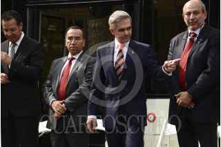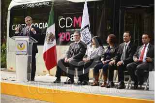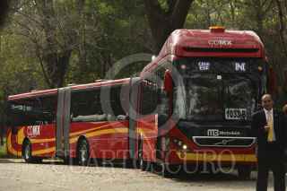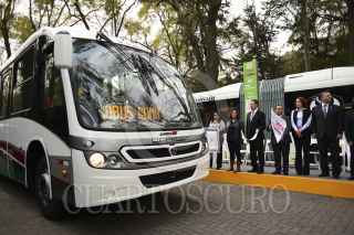 MÉXICO, D.F., 10DICIEMBRE2014.- El jefe de gobierno del Distrito Federal, Miguel Ángel Mancera Espinosa presidio la presentación de 9 metro-buses que pondrá en circulación en la línea 1 del sistema de transporte MB, la cual transporta diariamente a más de 450 mil personas, esto pretende contribuir a la mejora del servicio en horas pico. También se presentó un metro-bus híbrido que no daña en medio ambiente. FOTO: ISABEL MATEOS /CUARTOSCURO.COM