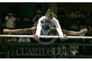 La mexicana Brenda Magaña muestra sus aptitudes en el salto de caballo donde ocupó las primeras posisciones de la copa gimnastica 2000.- FOTO: Germán Romero/CUARTOSCURO.