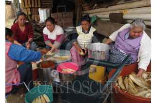LEÓN, GUANAJUATO, 12DICIEMBRE2014. En la comunidad de Duarte un grupo de señoras prepara tamales, un platillo típico para los mexicanos que consiste en una masa de maíz con manteca y que en su interior puede llevar carne, queso, rajas de chile y salsa, todo esto envuelto en hojas de maíz y cocidos al vapor. FOTO: GERARDO M. GARCÍA /CUARTOSCURO.COM