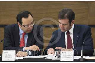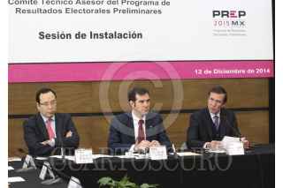 MÉXICO, D.F., 12DICIEMBRE2014.- Ciro Murayama Rendón, Consejero Electoral, Lorenzo Córdova Vianello, Consejero Presidente del INE y el secretario ejecutivo Edmundo Jacobo Molina durante la Coordinación Nacional de Comunicación Social de la Sesión Instalación del Comité Técnico Asesor del Programa de Resultados Electorales (COTAPREP). FOTO: INE /CUARTOSCURO.COM