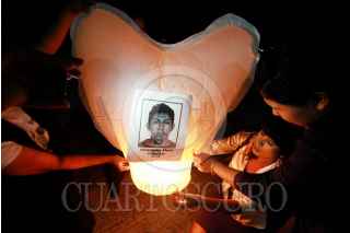 VERACRUZ, VERACRUZ, 12DICIEMBRE2014.- Jóvenes porteños, que pertenecen a agrupaciones estudiantiles y civiles, lanzaron globos de cantoya desde el bulevar Ávila Camacho para recordar a los primeros dos normalistas de Ayotzinapa que murieron durante un bloqueo en la autopista del Sol ocurrido hace tres años y por los 43 desaparecidos de Iguala, Guerrero. FOTO: FÉLIX MÁRQUEZ /CUARTOSCURO.COM