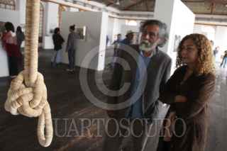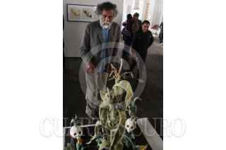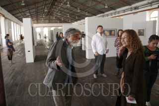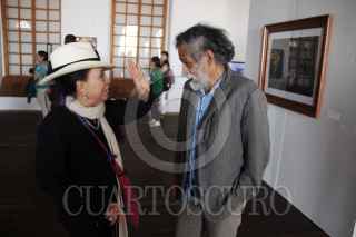 SAN AGUSTÍN ETLA, OAXACA, 13DICIEMBRE2014.- El pintor oaxaqueño, Francisco Toledo inauguró este sábado la exposición colectiva "Maíz nativo vs Maíz transgénico" en la que participan diversos artistas. La misma se integra de 170 piezas entre fotografías, esculturas y grabados entre otros. Esto forma parte de la campaña que el artista plástico inició este 2014 en contra del uso de semillas genéticamente alteradas en el campo mexicano. Toledo estuvo acompañado de Eduardo del Río "Rius" quien participó con una caricatura. FOTO: ARTURO PÉREZ ALFONSO /CUARTOSCURO.COM