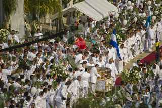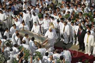 GUADALAJARA, JALISCO, 14DICIEMBRE2014.- Hoy en la Hermosa Provincia, sede internacional de la Iglesia de la Luz del Mundo, se realizo la ceremonia de despedida de el líder espiritual, Samuel Joaquín Flores, quien falleció la madrugada del lunes pasado. FOTO: FERNANDO CARRANZA GARCIA / CUARTOSCURO.COM