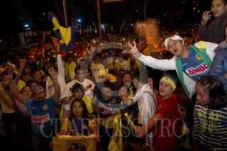 MÉXICO D.F., 14DICIEMBRE2014.- Miles de aficionados del Club de Futbol América, celebran en el Ángel de la Independencia, la obtención del décimo segundo campeonato del torneo de Apertura 2014-2015. Con marcador de 3-0, el América derroto al Club de Fútbol Tigres de la Universidad Autónoma de Nuevo León, en el Estadio Azteca. FOTO: GUILLERMO PEREA /CUARTOSCURO.COM