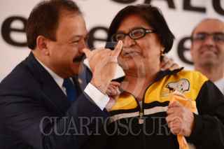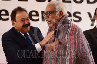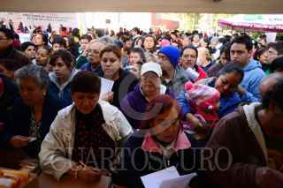 MÉXICO, D.F., 15DICIEMBRE2014.- El secretario de salud Armando Ahued Ortgea y Michel Devlin, presidieron esta mañana el programa de salud en Tlalpan Entrega de lentes y cobertores, en el cual, el secretario entrego lentes y cobertores a algunos de los beneficiados con este programa, ópticas Devlin fue la empresa encargada de la fabricación de lentes y realización de los estudios para las personas con problemas de visión, así también por cada par de lentes que compró el gobierno del Distrito Federal, Devlin entrego un par mas. La inversión del estado para dicho proyecto fue de 500 mil pesos. Se realizo también la vacuna contra la influenza. FOTO: ISABEL MATEOS /CUARTOSCURO.COM