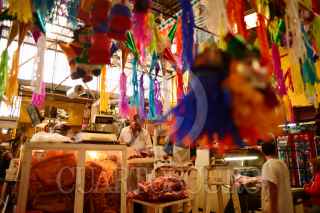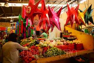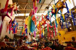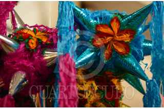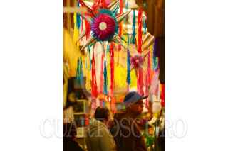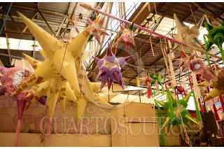 MÉXICO, D.F., 15DICIEMBRE2014.- El origen de la piñata tan utilizada en estas fechas fue con los franciscanos, quienes al llegar a México se enfrentaron a una forma de vida completamente diferente a lo que estaban acostumbrados. La conquista no fue solo adueñarse de las tierras, también fue la imposición de un idioma, hábitos y costumbres españolas, y entre otras cosas la religión, Los frailes diseñaron una olla de barro rodeada de papeles de colores en forma de estrella donde cada pico representa los siete pecados capitales. Así entonces se vencía la tentación y se rompía el mal. FOTO: ISABEL MATEOS /CUARTOSCURO.COM