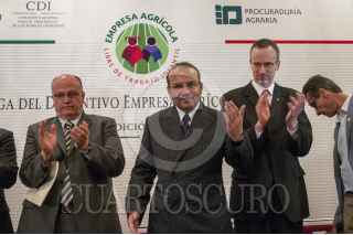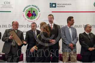MÉXICO, D.F., 16DICIEMBRE2014.- Alfonso Navarrete Prida, titular de la Secretaría de Trabajo y Previsión Social, durante la ceremonia de Entrega del Distintivo Empresa Agrícola Libre de Trabajo Infantil, como reconocimiento a las medidas para que ninguna empresa de la cualquier rama productiva contrate a menores de edad. FOTO: DIEGO SIMÓN SÁNCHEZ /CUARTOSCURO.COM