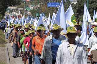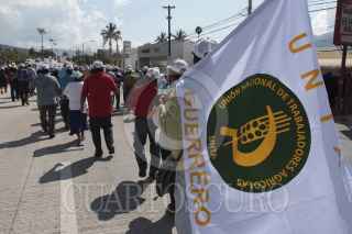 CHILPANCINGO, GUERRERO, 16DICIEMBRE2014.-Campesinos provenientes de diferentes municipios del estado que integran la Unión de Trabajadores Agrícolas (UNTA) se congregaron en el monumento al general Nicolás Bravo Rueda y de ahí marcharon hacia el Palacio Gobierno por el carril central de la autopista del sol de Norte a-Sur donde concluyo su movilización, los inconforme exigieron más apoyo al campo y el cumplimiento por las afectaciones del Huracán Manuel e Ingrid en el 2013. FOTOS: JOSÉ I. HERNÁNDEZ /CUARTOSCURO.COM
