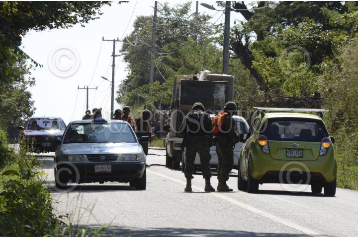 AYUTLA DE LOS LIBRES, GUERRERO, 17DICIEMBRE2014.- Surge nuevamente conflicto entre habitantes de varios municipios de Guerrero apoyados por el Movimiento Popular Guerrerense, la UPOEG, normalistas, familiares de los estudiantes desaparecidos y militares en el marco de una marcha desde la cabecera de Ayutla hasta el “Ranchito”, donde se ubica un cuartel de la policía estatal usado por miembros del Ejercito Mexicano. La manifestación fue para demandar la salida de los militares de la región, pues afirman que durante su estancia se ha incrementado el índice delictivo en el municipio. Los inconformes fueron atendidos por altos mandos de la zona militar sin llegar a ningún acuerdo, por lo que decidieron permanecer hasta que se retiren los militares. A 15 minutos de la cabecera municipal militares tendieron un cerco para cerrar el paso a los manifestantes dividiendo el grupo en dos partes. FOTO: BERNANDINO HERNÁNDEZ /CUARTOSCURO.COM