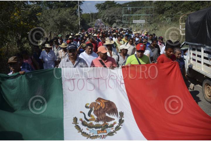 AYUTLA DE LOS LIBRES, GUERRERO, 17DICIEMBRE2014.- Surge nuevamente conflicto entre habitantes de varios municipios de Guerrero apoyados por el Movimiento Popular Guerrerense, la UPOEG, normalistas, familiares de los estudiantes desaparecidos y militares en el marco de una marcha desde la cabecera de Ayutla hasta el “Ranchito”, donde se ubica un cuartel de la policía estatal usado por miembros del Ejercito Mexicano. La manifestación fue para demandar la salida de los militares de la región, pues afirman que durante su estancia se ha incrementado el índice delictivo en el municipio. Los inconformes fueron atendidos por altos mandos de la zona militar sin llegar a ningún acuerdo, por lo que decidieron permanecer hasta que se retiren los militares. A 15 minutos de la cabecera municipal militares tendieron un cerco para cerrar el paso a los manifestantes dividiendo el grupo en dos partes. FOTO: BERNANDINO HERNÁNDEZ /CUARTOSCURO.COM
