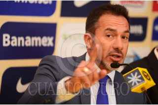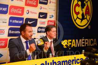 MÉXICO, D.F., 18DICIEMBRE2014.- El Club América después de ser campeón del Torneo de Apertura, toma la decisión de cambiar de director técnico y Ricardo Peláez director deportivo junto con José Romano director operativo presentan al uruguayo Gustavo Matosas como el nuevo DT, este en conferencia de prensa mencionó que viene a hacer su chamba y su estrategia es atacar, así que pretende una gran ofensa para este equipo de fútbol mexicano. FOTO: ISABEL MATEOS /CUARTOSCURO.