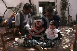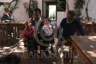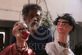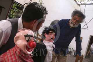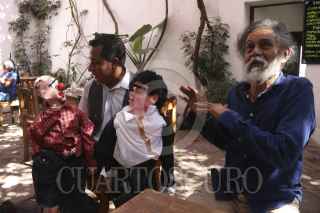 OAXACA, OAXACA, 19DICIEMBRE2014.- El pintor oaxaqueño, Francisco Toledo se reunió con Jacob Méndez y sus muñecos de ventriloquía Goyito y Serapio, esto como parte de un proyecto que tiene programado el artista plástico como parte de la lucha que inició este 2014 en la lucha contra la usa de los transgénicos en el país. FOTO: ARTURO PÉREZ ALFONSO /CUARTOSCURO.COM