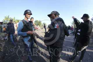 BUENAVISTA, MICHOACÁN, 19DICIEMBRE2014.- La tensión en la tenencia de Santa Ana Tomatla mejor conocido como la Ruana es latente, ya que entre los grupos de Hipólito Mora y El Americano las provocaciones son contantes. La Policía Federal resguarda la entrada de la comunidad. FOTO: JUAN JOSÉ ESTRADA SERAFÍN /CUARTOSCURO.COM