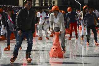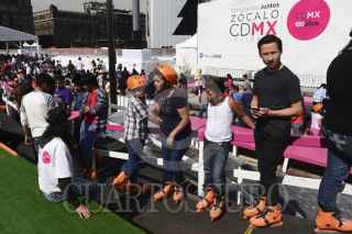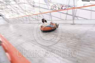MÉXICO, D.F., 19DICIEMBRE2014.- En la plancha zócalo capitalino para estas fiestas navideñas se pueden disfrutar de las diferentes atracciones que el gobierno del Distrito Federal, como los dos toboganes de hielo y la pista de hielo. diariamente acuden miles de personas. FOTO: ISABEL MATEOS /CUARTOSCURO.COM