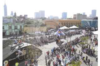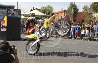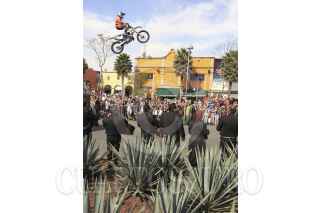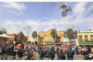 MÉXICO, D.F., 19DICIEMBRE2014.- Un espectáculo de motocross acrobático se realizó en la Plaza de Garibaldi, este evento fue presentado por la compañía Red Bull Fighters. En esta histórica plaza se colocaron unas rampas donde los motociclistas ejecutaron piruetas en el aire para deleite de los curiosos. FOTO: GABINO ACEVEDO /CUARTOSCURO.COM