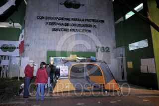 MÉXICO D.F., 20DICIEMBRE2014.- Ahorradores de la CONDUSEF se manifestaron en las afueras de las oficinas ubicadas en Avenida de los Insurgentes a la altura de la colonia Del Valle, por presuntos fraudes en sus cuentas. FOTO: LUIS CARBAYO /CUARTOSCURO.COM