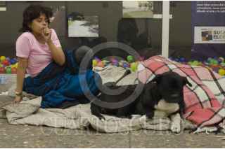 MÉXICO, D.F., 20DICIEMBRE2014.- Osiris tiene 17 años y vive en la calle. Por las noches se guarece del frío al interior del Metro Hidalgo. "La Negrita", quien la acompaña desde hace dos meses, es su compañía. FOTO: MARÍA JOSÉ MARTÍNEZ /CUARTOSCURO.COMFO