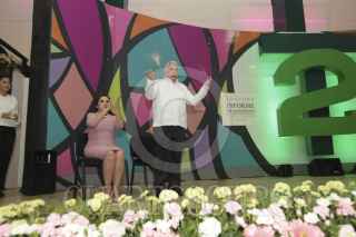 TEAPA, TABASCO, 20DICIEMBRE2014.- Elda Llergo Asmitia, alcaldesa de este municipio rindió anoche su segundo informe de labores en el Centro de Convenciones de la localidad, donde tuvo la presencia de Arturo Núñez Jiménez. El mandatario tabasqueño reconoció el gobierno municipal de la priista y dijo que su trabajo es muy transparente y ejemplo para los demás municipios del territorio tabasqueño. FOTO: MARCO POLO GUZMÀN HERNÁNDEZ /CUARTOSCURO.COM