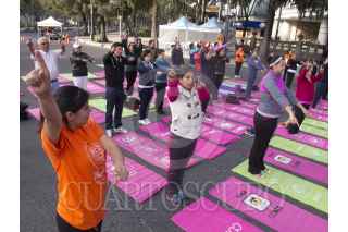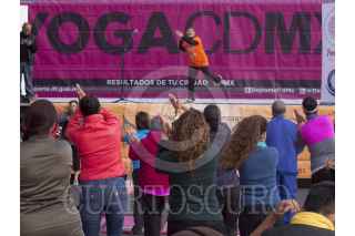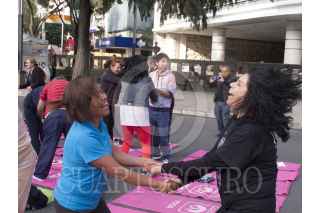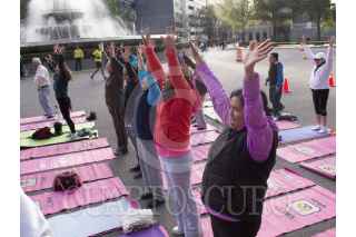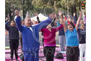MÉXICO, D.F., 21DICIEMBRE2014.- Clase de Yoga de la Risa sobre Paseo de la Reforma como parte de las actividades físicas organizadas por autoridades del Gobierno del DF, en la cual enseñan a relajarse a través del arte de sonreír. FOTO: MOISÉS PABLO /CUARTOSCURO.COM