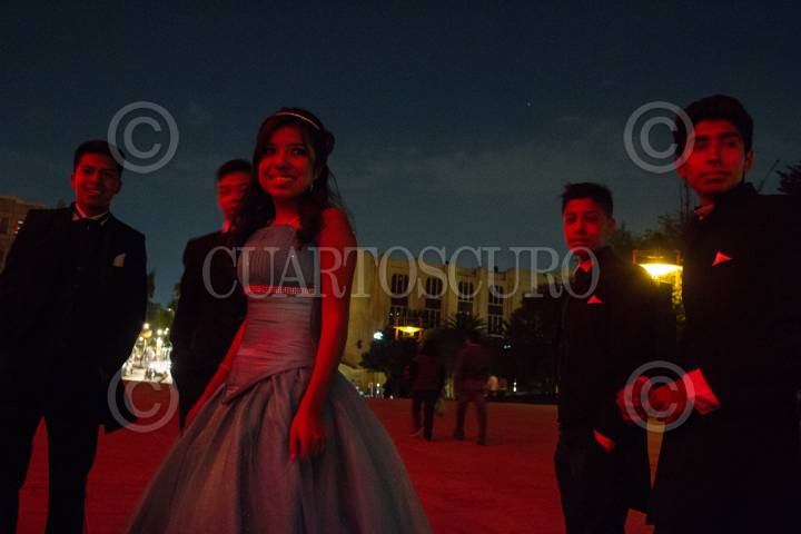 MÉXICO, D.F., 21DICIEMBRE2014.- Una quinceañera acude al monumento a la Revolución para tomarse la foto del recuerdo con la iluminación nocturna del inmueble. FOTO: ISAAC ESQUIVEL /CUARTOSCURO.COM