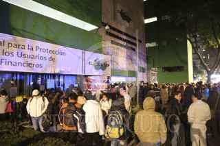 MÉXICO, D.F., 22DICIEMBRE2014.- Ahorradores se manifestaron a las afueras de la CONDUSEF donde la tarde hoy realizaron una reunión con autoridades federales para dar una solución al conflicto que dejó la liquidación por fraude de Ficrea. FOTO: SAÚL LÓPEZ /CUARTOSCURO.COM