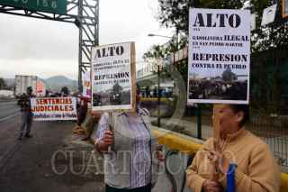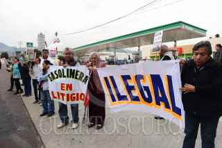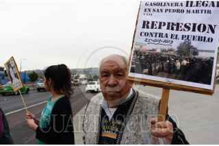 MÉXICO, D.F., 23DICIEMBRE2014.- Un grupo de aproximadamente 40 personas se manifiestaron en contra de una gasolinera ubicada en el kilómetro 19 de la autopista México -Cuernavaca, en el pueblo de San Pedro Mártir de la delegación Tlalpan. Los pobladores mencionan que se oponen a esta, ya que ha bloqueado la única calle que tenían para comunicarse al centro de San Pedro Mártir, a raíz de esta construcción se han presentado muchos accidentes automovilísticos que ponen en riesgo a los peatones y sufren de escasez de agua, provocado por el descuido de las tuberías en la construcción de la gasolinera. El día 25 de diciembre del año pasado se manifestaron en contra de corpogas (dueño de dicha gasolinera), llegaron 2480 granaderos, y con uso de violencia desalojaron a los manifestantes, así también algunos de los elementos de la policía actuaron como "franeleros", señalando a los automovilistas la entrada a la gasolinera. FOTO: ISABEL MATEOS /CUARTOSCURO.COM