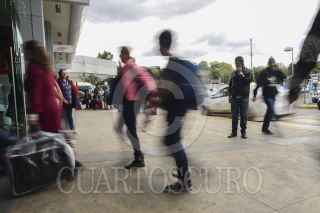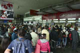 MÉXICO, D.F., 23DICIEMBRE2014.- En la ultima semana previa a Navidad, los viajeros que llegan a la ciudad de México o deciden salir de la misma, saturaron la Central de Autobuses del Sur. Cientos de personas hicieron largas filas para obtener boletos a diferentes destinos, principalmente al estado de Morelos. Los clientes formados en la fila para comprar un pasaje se extendió hasta la puerta de acceso a la central. FOTO: ISABEL MATEOS /CUARTOSCURO.COM