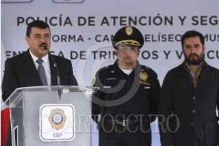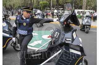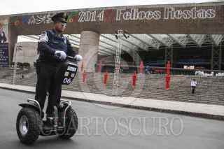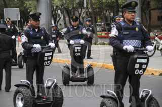 MÉXICO, D.F., 23DICIEMBRE2014.- Hiram Almeida Estrada, Secretario de Seguridad Pública, y Víctor Hugo Romo, Delegado de la Miguel Hidalgo, dieron el banderazo de salida a 30 vehículos eléctricos y a 300 elementos que reforzarán a la policía turística que vigilaran la zona Chapultepec-Polanco durante el periodo vacacional. FOTO: ADOLFO VLADIMIR /CUARTOSCURO.COM