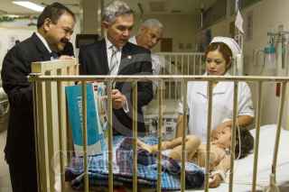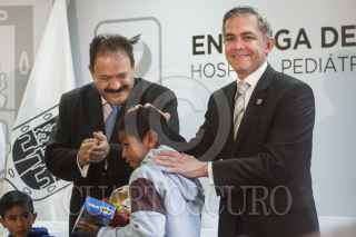 MÉXICO, D.F., 24DICIEMBRE2014.- Una pequeña es atendida en el Hospital Pediátrico de Tacubaya, a donde autoridades del Gobierno del Distrito Federal acudieron para regalar juguetes a los pequeños pacientes ahí internados, en el marco de la celebración de la Navidad. FOTO: ISAAC ESQUIVEL /CUARTOSCURO.COM
