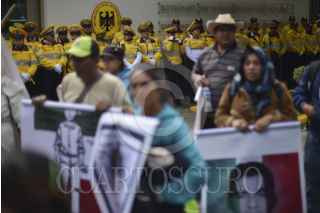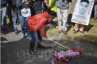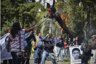 MÉXICO, D.F., 25DICIEMBRE2014.- Familiares, compañeros y amigos de los 43 estudiantes normalistas desaparecidos de Ayotzinapa, se manifestaron en la embajada de Alemania en México, como parte de las acciones de lucha por la búsqueda de los jóvenes. Denunciaron la venta de armas de ese país al gobierno de México, mismas que fueron utilizadas “por la Policía Federal y la policía estatal para matar a tres de nuestros compañeros". FOTO: ADOLFO VLADIMIR /CUARTOSCURO.COM